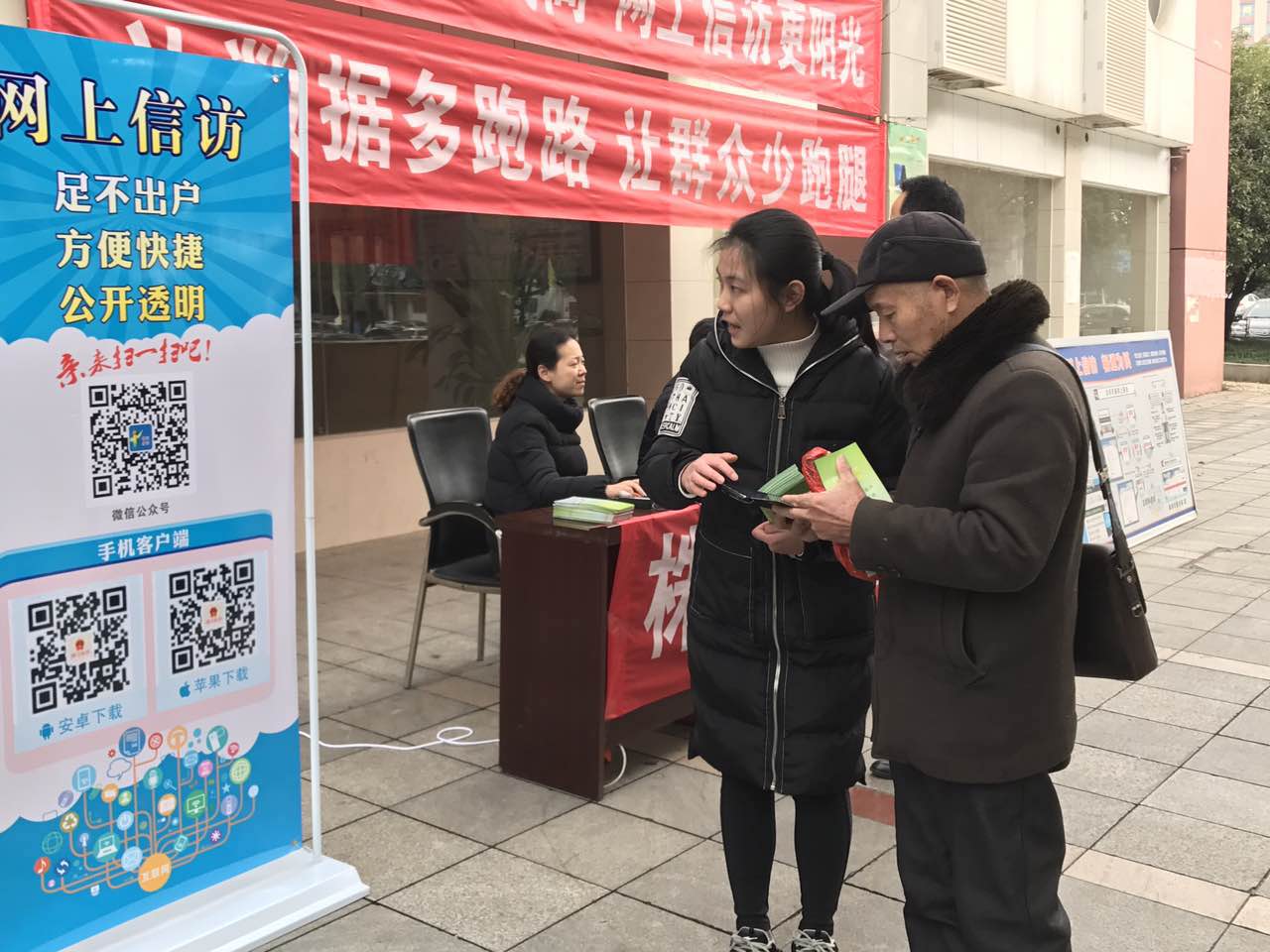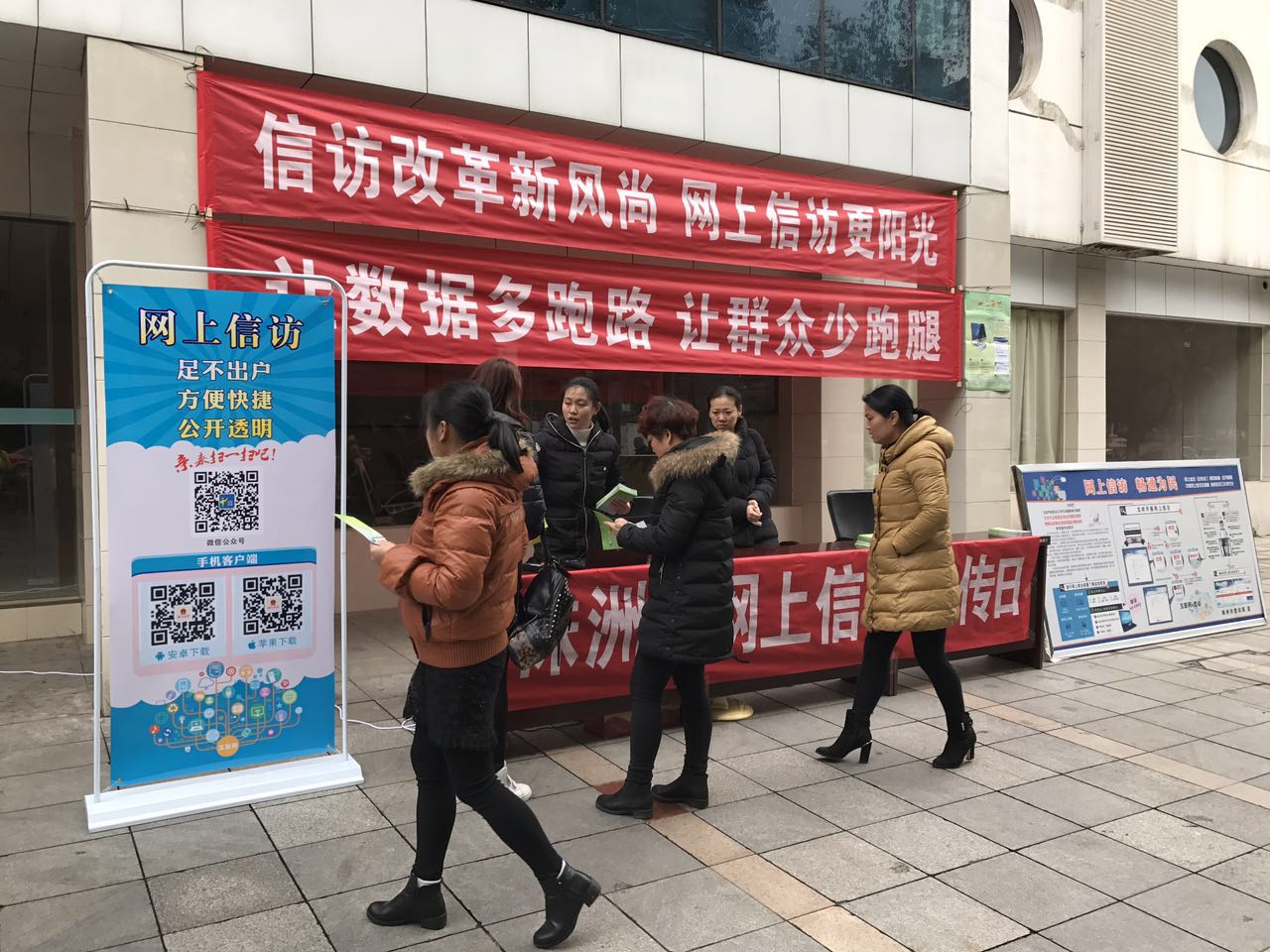 2月24日,株洲市信访局开展网上信访宣传活动,推广"互联网+信访"工作模式,打造阳光信访新平台。活动现场,工作人员通过发放宣传资料、张贴宣传海报、悬挂宣传横幅、现场咨询及演示等多种形式,就怎样上网信访、网上信访的优点和操作方法等问题一一为市民进行讲解,并指导市民用手机扫描二维码,关注市信访局微信公众号和下载信访app来了解信访动态及相关政策法规,引导群众通过网上投诉平台反映诉求。