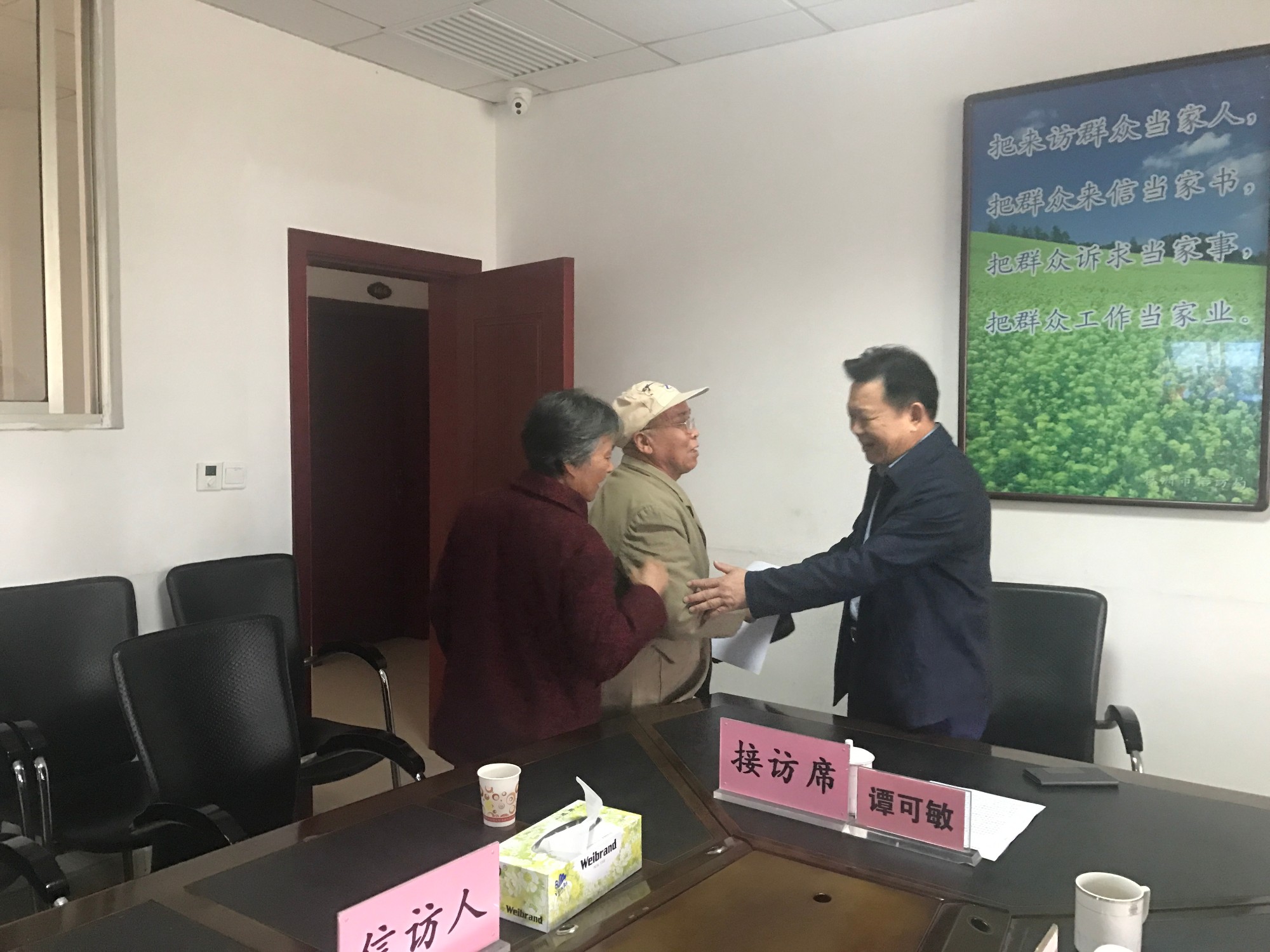 10月19日上午,市人民政府副市长谭可敏到市信访局接待上访群众,市信访局党组成员、副局长段和明陪同。