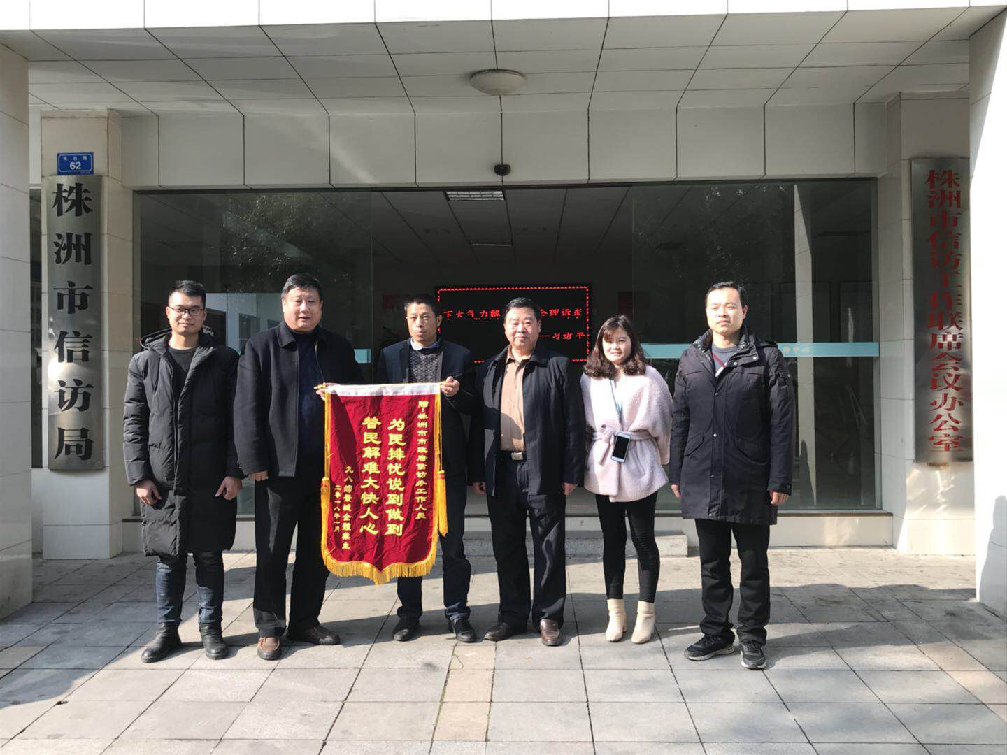近日,株洲市天元区九八缔景城业主将一面印有"为民排忧说到做到,替民解难大快人心"的锦旗送到市信访局,以表达他们对市信访局积极协调解决他们小区违规建设垃圾站问题的衷心感谢。