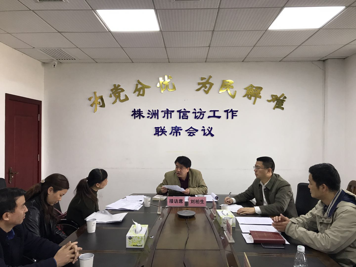 来访人天元区谭某反映征地拆迁有关问题,在征拆过程中,项目指挥部工作人员违规操作,导致其房屋等设施没有补偿到位等问题。刘柏生细致听取了谭某的陈述,弄清了事情的来龙去脉,向现场有关单位的负责同志详细了解相关情况。在分析案情后,刘柏生指出,责任部门要按照国家相关政策规定,本着实事求是的原则,同时充分考虑到信访人合法权益,妥善处理好谭某的拆迁安置问题。