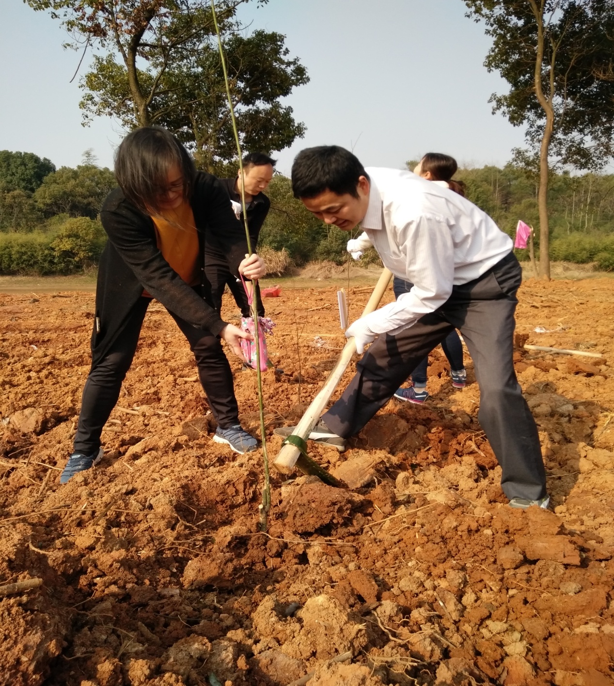 在活动现场,大家分工协作,有的挥锄打穴,有的放植树苗,有的扶直苗木,栽的认真,干的卖力,大家一边植树,一边了解今年种植的树木品种、生长周期,树木成活等情况,现场一片热火朝天的劳动景象。在整个植树过程中,大家充分享受着植树活动带来的乐趣,经过一上午的努力,30余株树苗在微风中摇动,它们是汗水的凝结,希望的寄托,未来的象征。