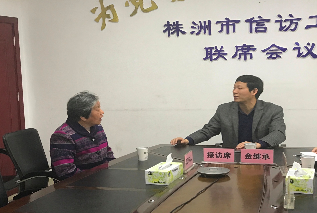 接访过程中,金继承耐心倾听上访人的诉求并认真做好记录。在了解上访人诉求后,金继承又仔细询问相关部门的负责同志,进一步了解核实相关情况,深入研究解决问题的办法和方案,切实帮助群众依法解决实际困难。天元区三门镇69岁的吴某反映其原为村干部,现要求享受村干部相应待遇以及申请低保等问题。金继承现场批示,要求相关部门要严格按照政策办事,按照公平公正的原则,积极稳妥处理问题。