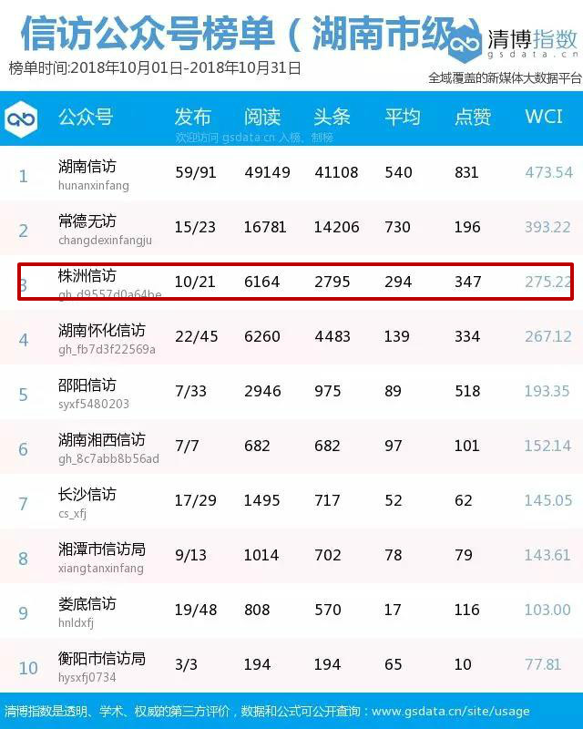 围观!湖南信访系统微信公众号10月榜单出炉,“株洲信访”位居全省第三