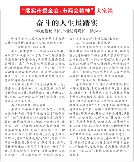 (作者系市政府副秘书长、市信访局局长彭小中)