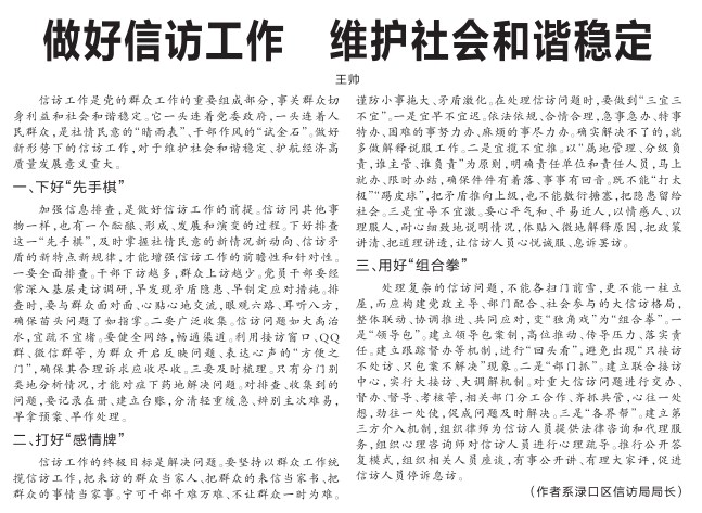 (作者系渌口区信访局局长 王帅)