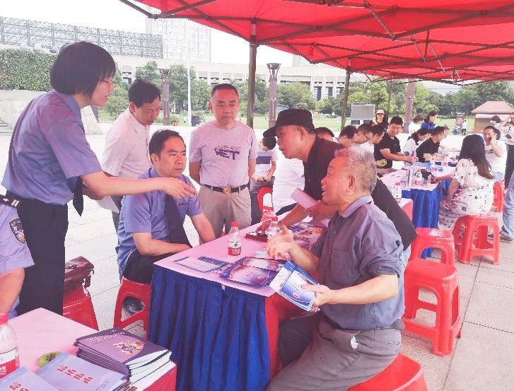 市级活动现场,市信访局、市委政法委、市中级人民法院、市人民检察院、市公安局、市司法局等18家市直单位及天元区现场进行集中宣传。
