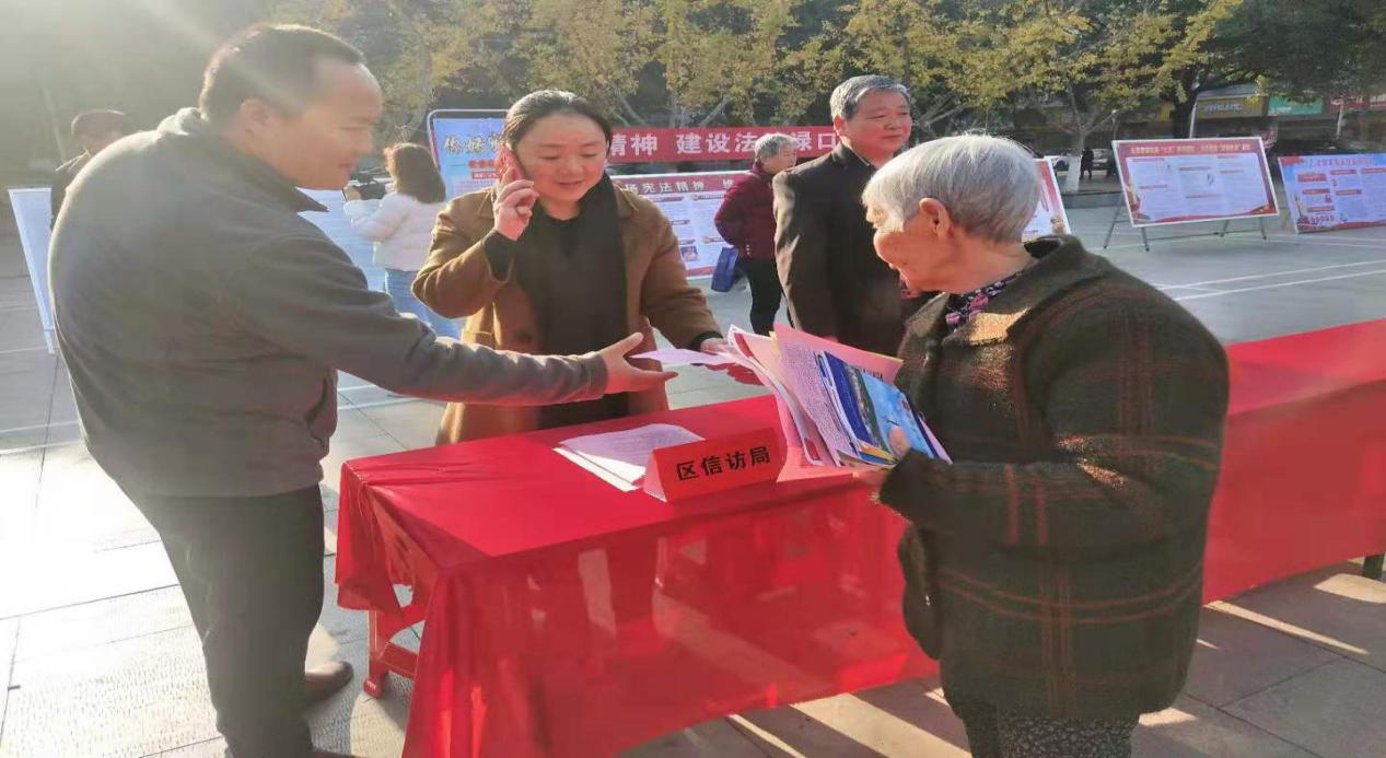 此次活动以《中华人民共和国宪法》宣传为主,同时宣传《信访条例》等法规政策,为群众带来了丰盛的法治知识大餐。过往群众或停在宣传展板驻足观看,或从工作人员手中接过宣传资料后翻开认真学习,还有一些群众直接向工作人员询问他们关心关切的法律知识话题。