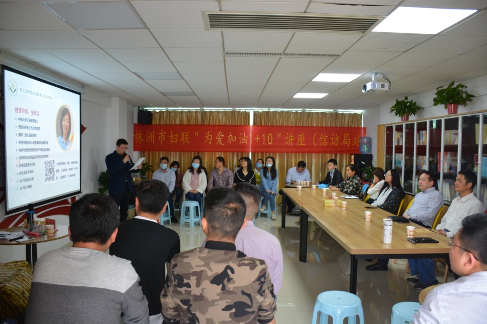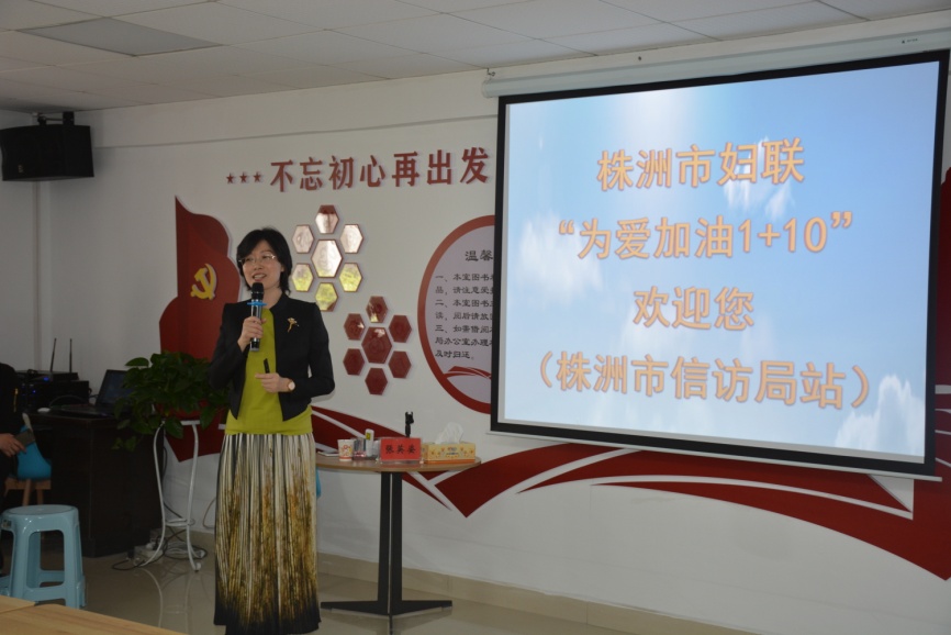 此次活动是株洲市妇联“为爱加油1+10”系列讲座首次走近信访局。市委编办的领导和特警支队四大队部分干警与信访局干部职工共同聆听了讲座。