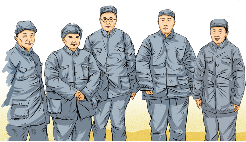 ▲ 淮海战役五人总前委成员。 左起:粟裕、邓小平、刘伯承、陈毅、 谭震林。