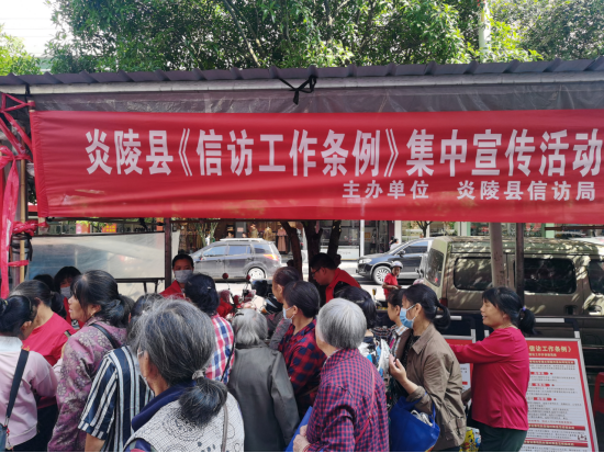 5月19日,炎陵县信访局联合县人民法院、县人民检察院、县政法委等十余家单位在县步行街开展《条例》实施一周年主题宣传暨第六个信访法治宣传月活动。活动现场,通过设置移动展板、悬挂横幅标语、发放宣传资料和纪念品、播放宣传音频、现场宣讲等形式,为群众解读《条例》,普及信访方式、信访人权利和义务、信访事项办理流程等知识,引导群众通过合法的途径来反映问题,推进信访工作进一步规范化、法治化。