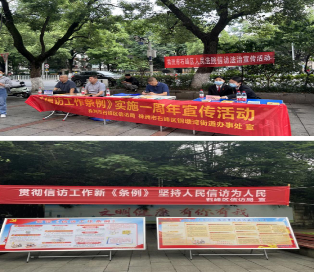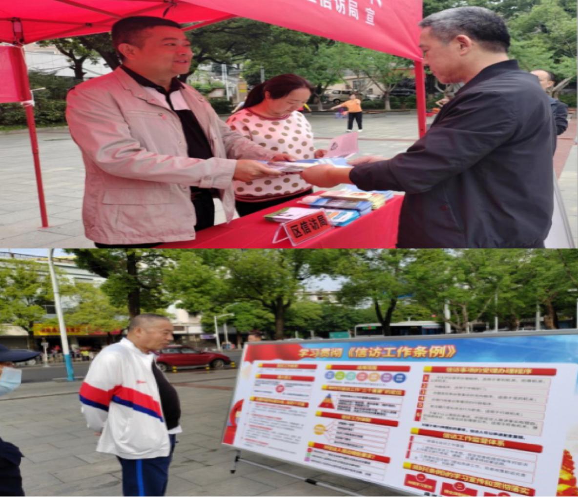为进一步做好《条例》的宣传、推广、总结,石峰区信访局分别在5月15日、5月29日联合区纪委监委、区法院、各街道等部门,组织信访专干在石峰公园、响石岭社区、铜锣湾广场举行了集中宣传活动。