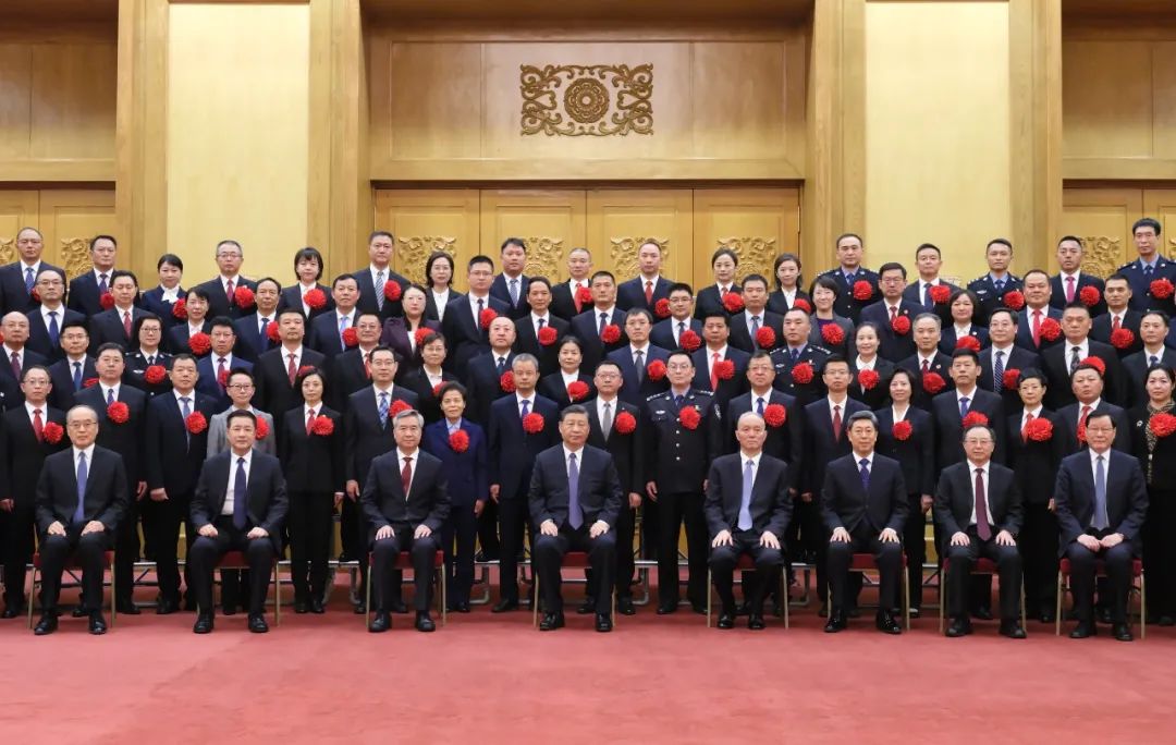 11月6日,党和国家领导人习近平、蔡奇、李希等在北京人民大会堂会见全国"枫桥式工作法"入选单位代表。新华社记者 李学仁 摄