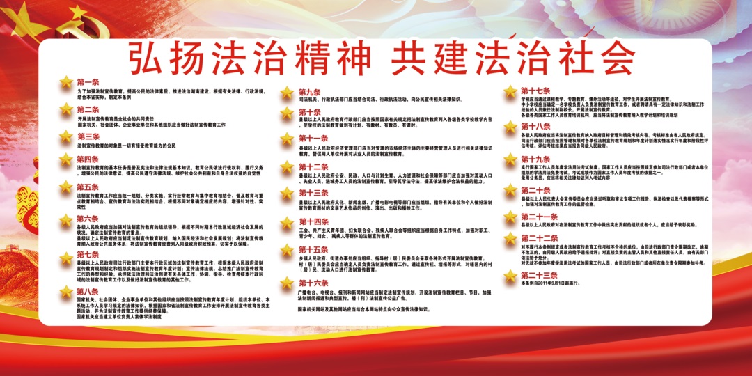 《湖南省法制宣传教育条例》(以下简称条例)自2011年9月1日推行以来,将我省的法制宣传教育的地位作用、目标任务、制度保障和一些被实践证明的成功经验、好的做法以法规的形式确立下来,实现了法制宣传教育工作的法制化,从而更加有力地推动了法制宣传教育工作的深入开展,为"法治湖南"建设打下坚实的基础。今天是她十周岁生日,让我们一同回顾这段光辉岁月里,给湖南人民的生活带来了哪些改变。