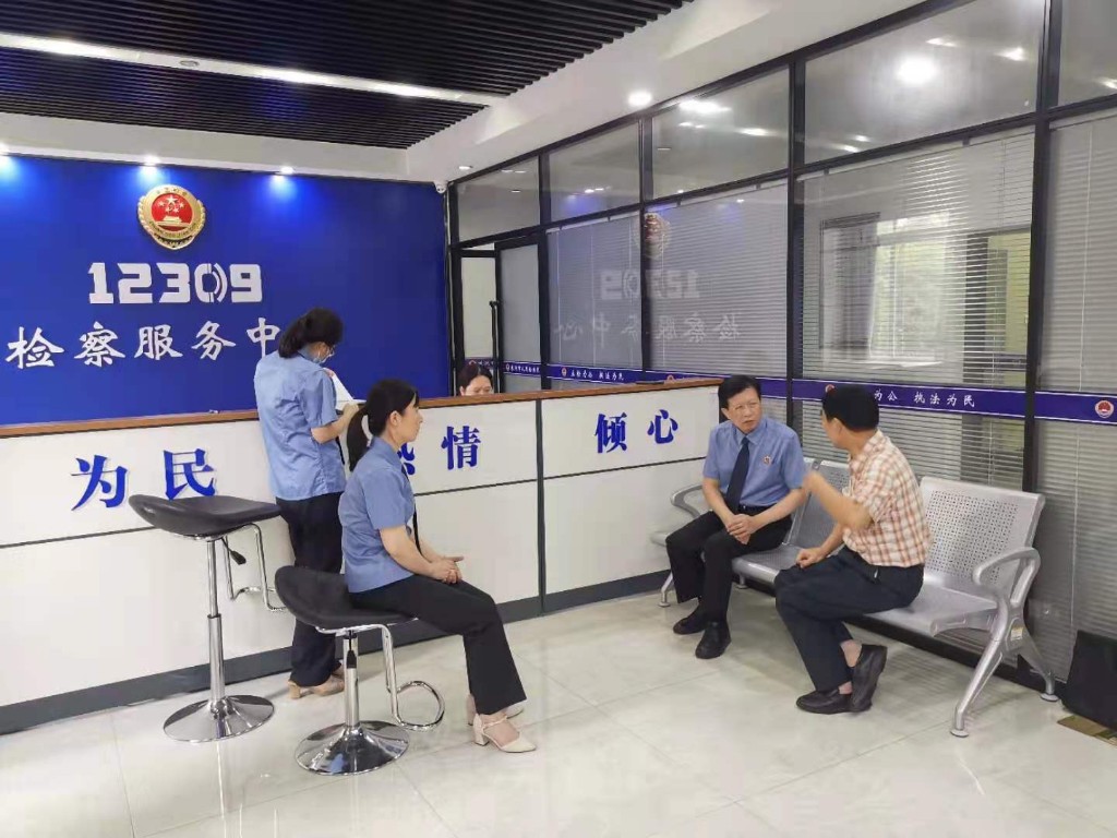 7月1日,市人民检察院党组书记、检察长胡波在12309检察服务大厅接待来访群众。